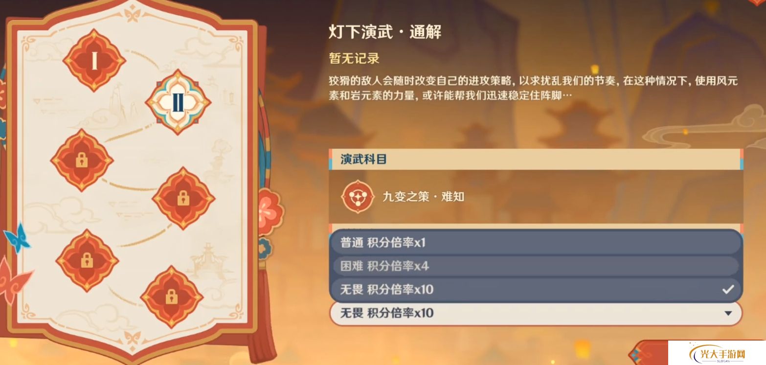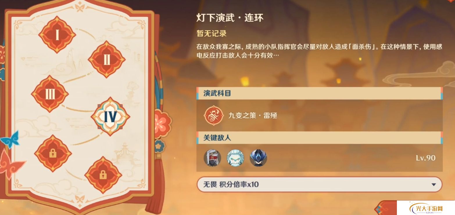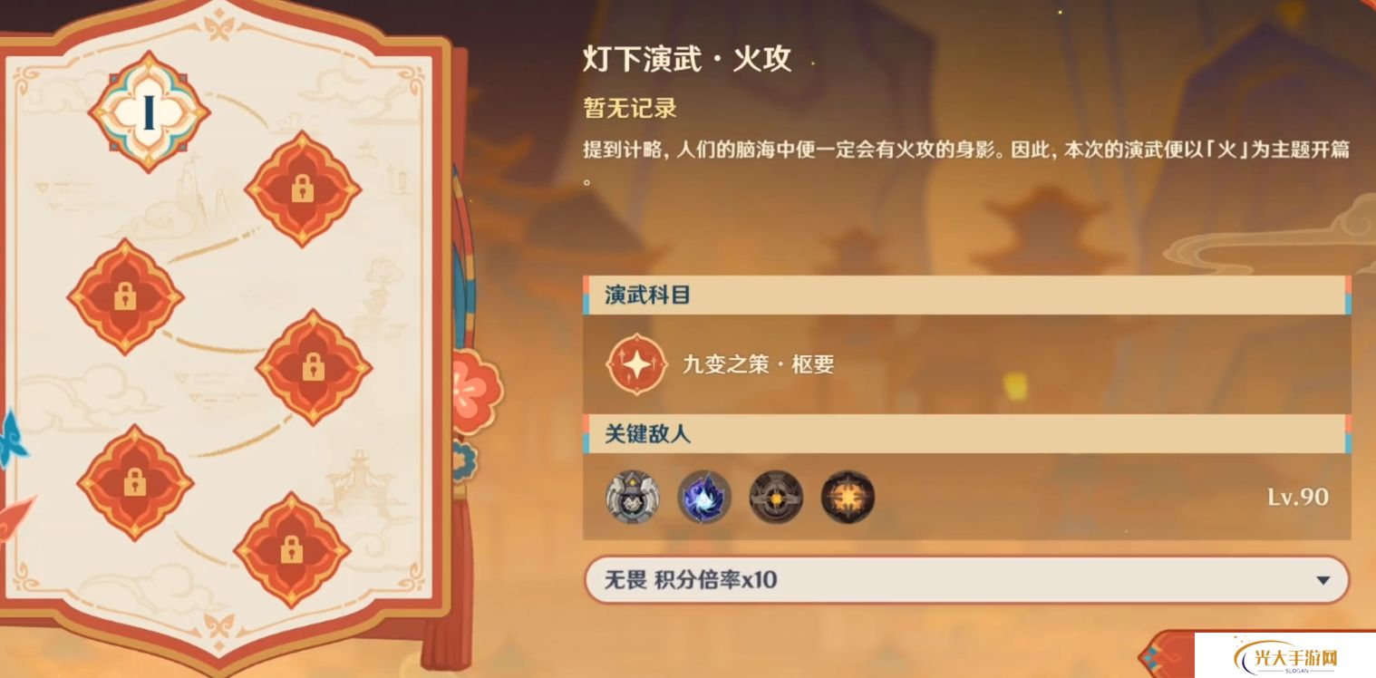 本篇为大家分享原神5.3版本的灯下演武全关卡打法,采用的是试用角色配队,大家在打的时候可以选择10倍率。