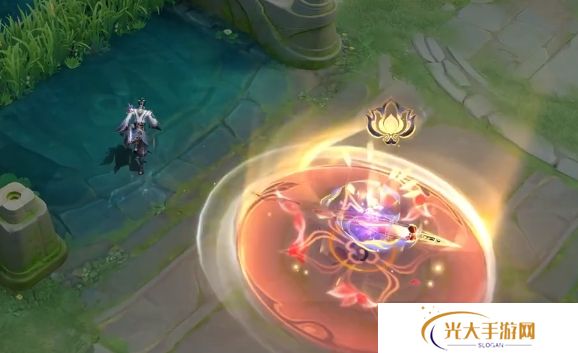 ◆二技能:狄仁杰转身挥出牡丹画卷,地面金色牡丹团印记随之显现。牡丹令牌裹挟能量金线特效掷向四周,而神都洛阳的牡丹盛景更是名扬四海。