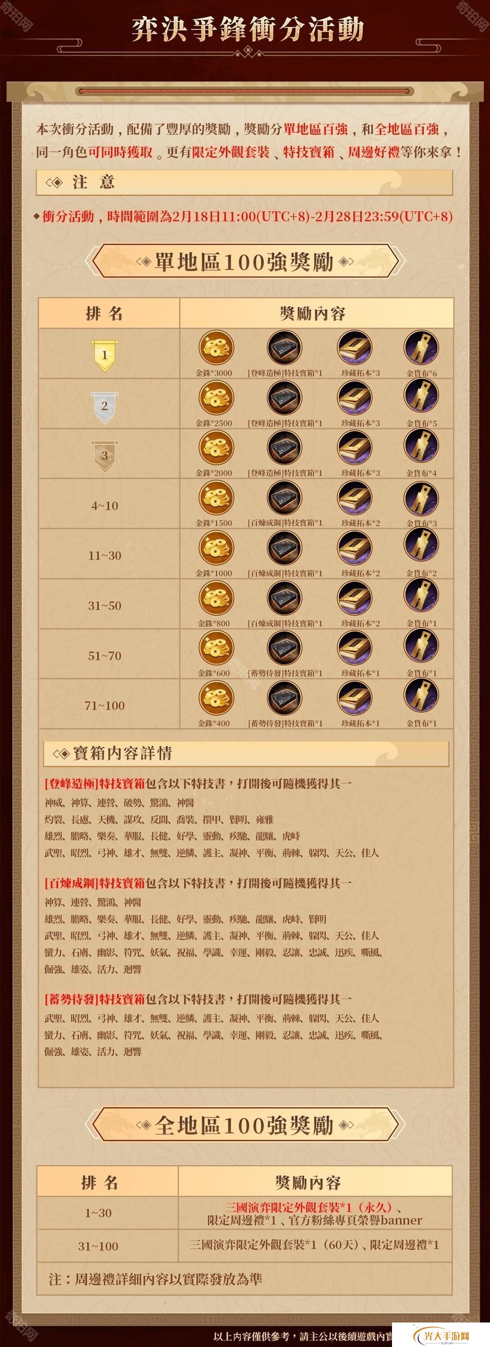 参与三国演弈先锋赛冲分活动,有最高 3000 金铢、限定外观套装、特技宝箱、周边好礼!