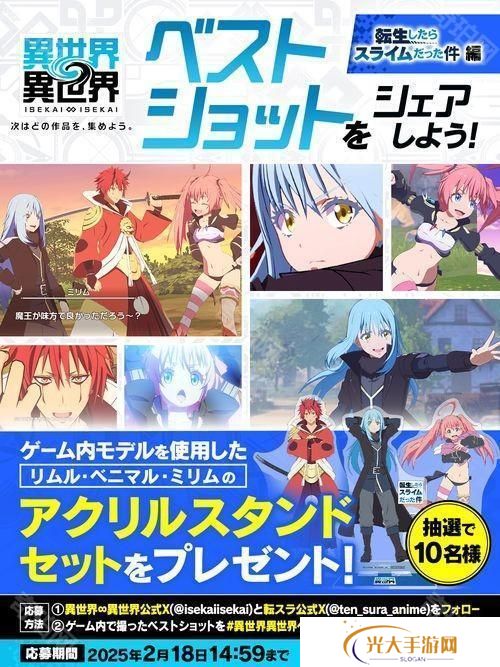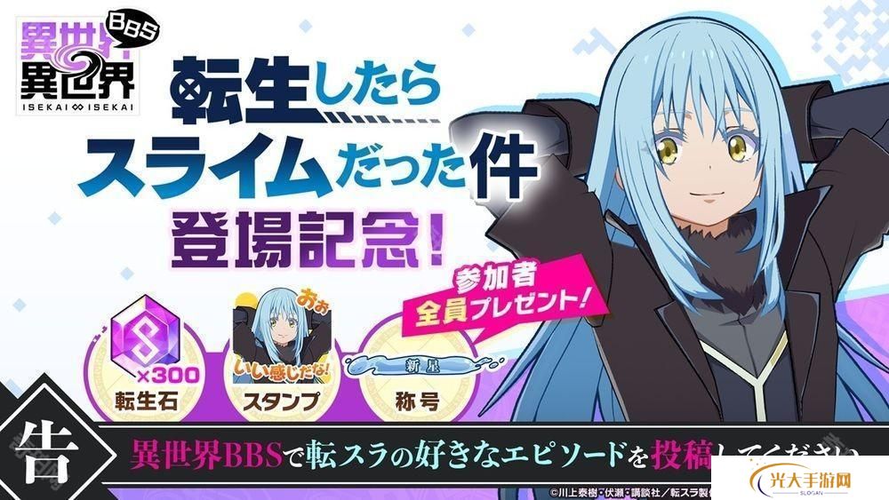 COLOPL2月7日宣布,智慧型手机及PC 平台新作《异世界∞异世界》将迎来人气动画作品 《关于我转生变成史莱姆这档事(転生したらスライムだった件)》以及其中的主要角色们。