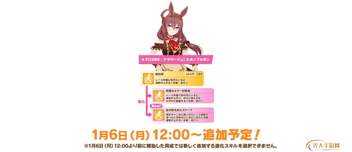 01/06预定追加1名马**可选进化技能。