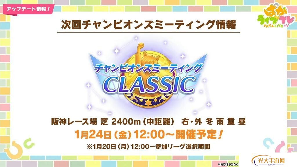 01/24预定进行冠军集会「CLASSIC」,2月中旬预定进行群英联赛。