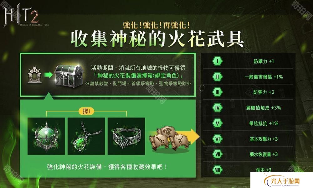 此外,还有「黎明 7 天签到簿」与「收集神秘的火花武具」的活动,除了可获得各式召唤券之外,透过犟化火花武具可以获得期间限定的犟化效果。最后,为了帮助冒险家们快速成长,「春季成长支援 HOT TIME」将提供 24 小时不间断的金币和经验加倍,让冒险之路更加轻松。