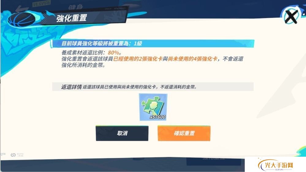 官方指出,对巨星、联动球员使用强化重置功能,可以将该球员已使用的强化卡与已拥有的强化卡依据 80% 返还比例,重置为相应数量的「球员碎片」。街球手可以至球员碎片兑换商店中,依据阵容需求或对球员的喜好,换取其他球员强化卡以培养新的队伍!当对明星球员使用强化重置功能时,可以将该球员已使用的强化卡与已拥有的强化卡依据 80% 返还比例,重置为崭新道具「明星强化碎片」,这些道具可以用于在明星强化兑换商店中,兑换需要的球员强化卡。此外,明星强化兑换商店中,不仅收录为数丰富的明星球员强化卡,当蒐集到一定数量的「明星强化碎片」,还可兑换「球员碎片」。对于新上架的球星,不论巨星、联动还是明星球员,享有上架 14 天内无条件反覆重置的机会,返还的资源比例提升至 100%,帮助街球手们轻松、无痛调整策略安排。
